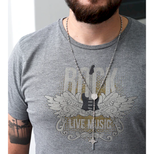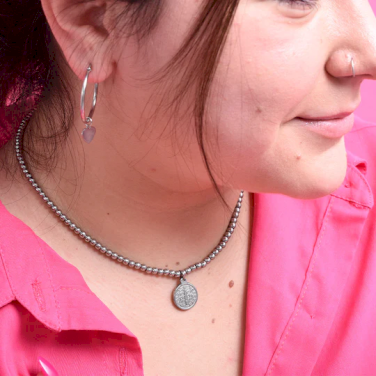 Collar de acero quirúrgico con cadena y bolitas enhebradas y un dije pequeño de San Benito. Es un modelo súper trendy y canchero. Además viene presentado en una lata con la tapa de San Benito en color fucsia, perfecto para regalo????.